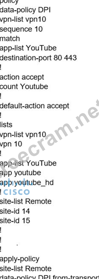 Question 191: An engineer modifies a data policy for DIA in VPN 200 to mee...