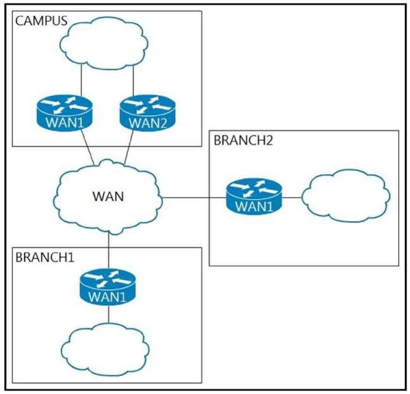 Refer to the exhibit. An architect must design an IP addressing scheme for a multisite network connected via a WAN transit. The campus site must accommodate 12,000 devices and the branch sites must accommodate