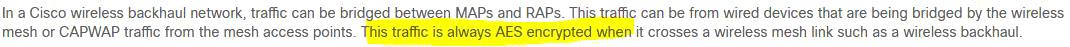 A customer is concerned about mesh backhaul link security. Which level of encryption does the backhaul link use?