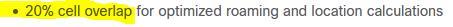 What is the recommended cell overlap when designing a wireless network for Cisco Hyperlocation?