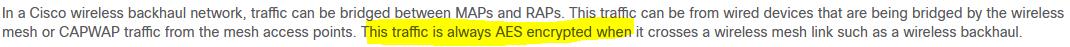 A customer is concerned about mesh backhaul link security. Which level of encryption does the backhaul link use?