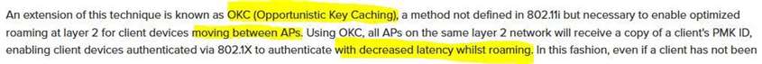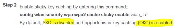 An engineer must ensure that the wireless network can accomplish fast secure roaming by way of caching keys on the access points. Which key caching mechanism is enabled by default on a Cisco AireOS WLC?