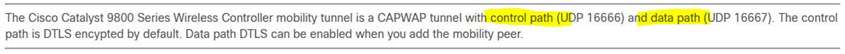 Which statement about the 9800 Series Wireless Controller mobility tunnel on a Cisco Catalyst 9800 controller is true?