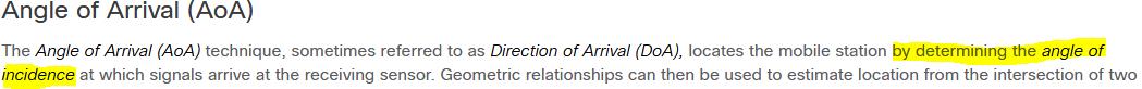 A wireless engineer needs to implement client tracking. Which method does the angle of arrival use to determine the location of a wireless device?