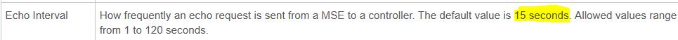 What is the default NMSP echo interval between Cisco MSE and a Wireless LAN Controller?