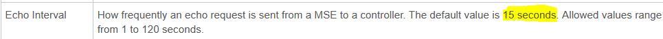 What is the default NMSP echo interval between Cisco MSE and a Wireless LAN Controller?
