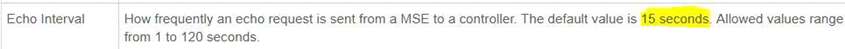 What is the default NMSP echo interval between Cisco MSE and a Wireless LAN Controller?