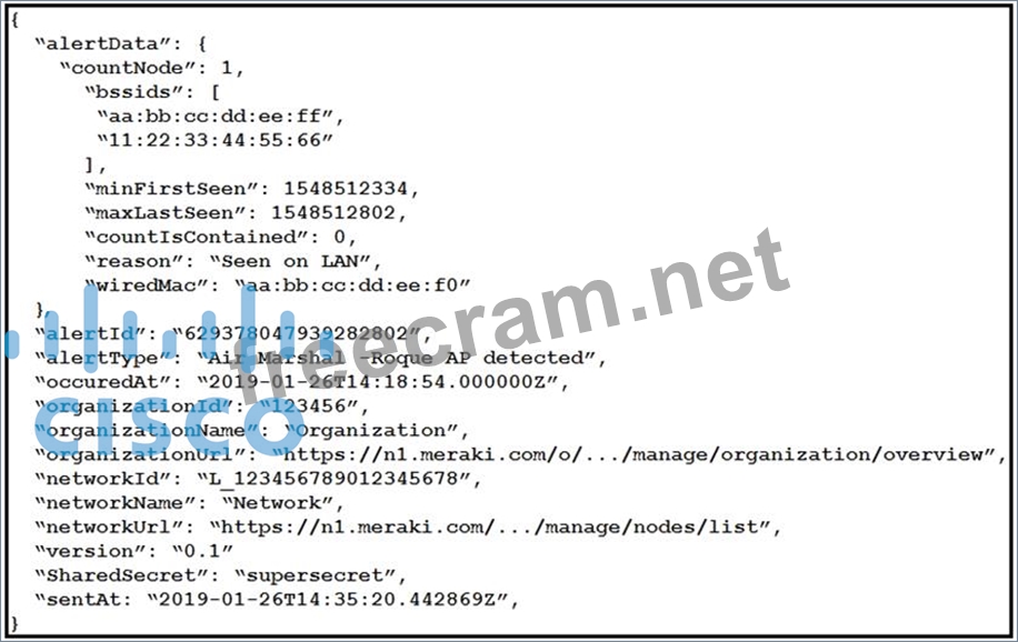 The goal is to write a Python script to automatically send a message to an external messaging application when a rogue AP is detected on the network. The message should include the broadcast SSID that is in the alert. A function called "send_to_application" is created, and this is the declaration: