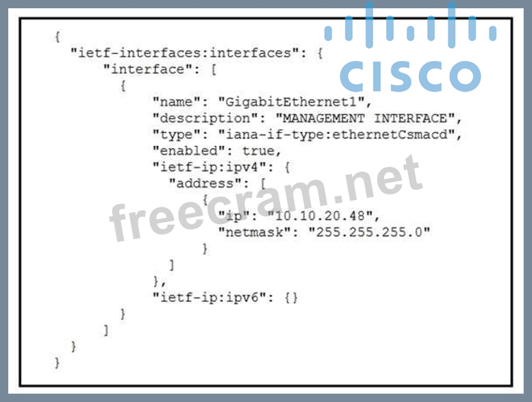 Question 67: Refer to the exhibit. A RESTCONF GET request is sent to a Ci...