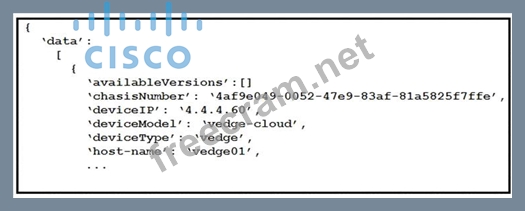 Refer to the exhibit. A Python script has been created that calls the Cisco SD-WAN vManage Device Inventory API to get the list of vEdges. The JSON data that returns to a Python dictionary has been converted and assigned to a variable named "d". A portion of the JSON is shown in the exhibit. Which code will complete the expression hostname= to access the hostname?