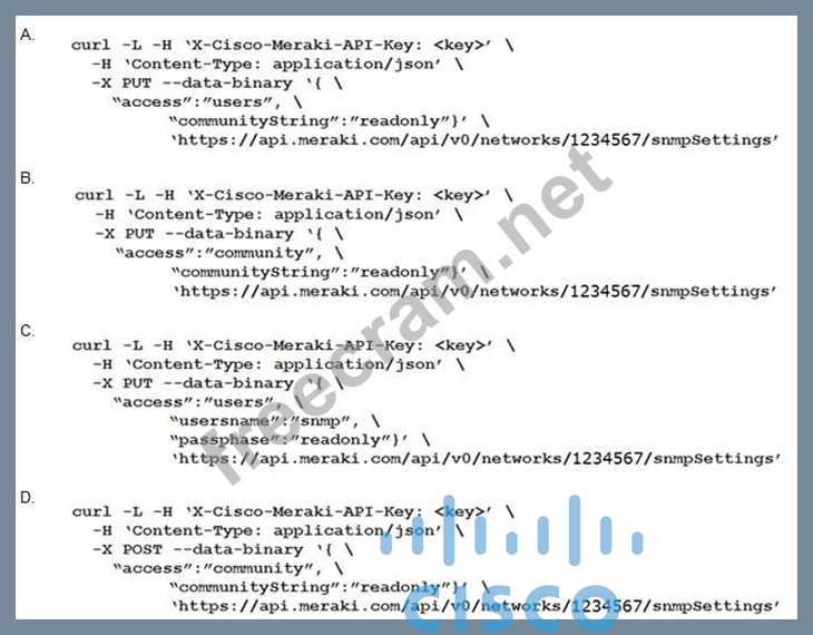 Question 113: Which curl command is used to update the SNMP community of n...