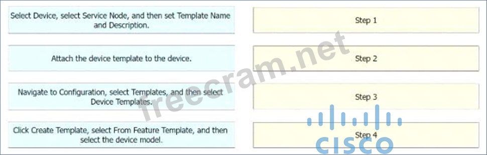 Step 1 = Navigate to Configuration, select Templates, and then select Device Templates. Step 2 = Click Create Template, select From Feature Template, and then select the device model. Step 3 = Select Device, select Service Node, and then set Template Name and Description. Step 4 = Attach the device template to the device.