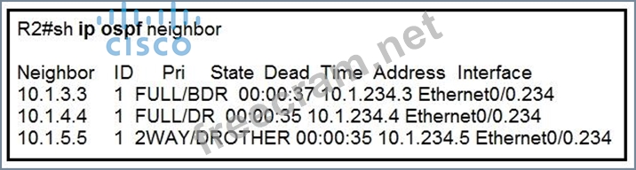 Why is neighbor 10.1.5.5 stuck in "2WAY" state?