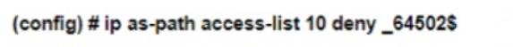 Refer to me exhibit. A network engineer sets up a multihoming eBGP topology where multiple Autonomous Systems connect to ASN 64501. The engineer wants to block all the routers coming from ASN 64502. but allow all the others. For that purpose, the following AS Pam prefix 1st s being used: What must be fixed to achieve this result?