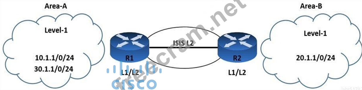 Refer to the exhibit. An engineer is troubleshooting IS-IS configuration between two areas. IS-IS Area-A network 30.1.1.0/24 is leaked into IS-IS Area-B. R2 is failing to filter the route updates from network 10.1.1.0/24. Which configuration must the engineer apply to resolve the issue?