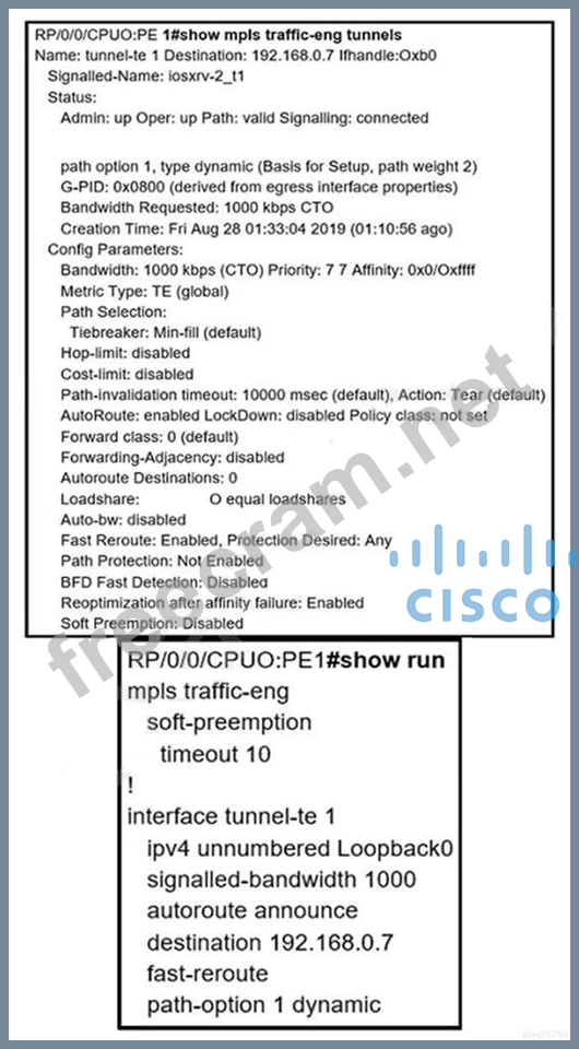 Refer to the exhibit. A network operator is troubleshooting TE tunnels and discovers that the soft preemption is not working as desired.