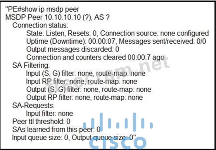 Refer to the exhibit. A service provider technician is working on a multicast issue for a customer.