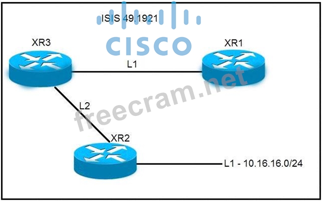 A network operator must inject a Level 1 route from XR2 (10.16.16.0/24) into the ISIS topology. Which configuration allows the injection in a way that XR3 and XR1 have a valid and working route for 10.16.16.0/24?