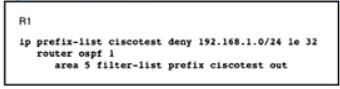 An engineer applied the configuration on R1 to prevent network 192.168.1.0/24 from being propagated outside of area 5. After the change, users have reported they are not able to access any of the application servers that were working before. While checking the routing table of the peer router. The engineer notices R1 stopped propagating any routes outside are 5. Which action must be taken to fix the problem?