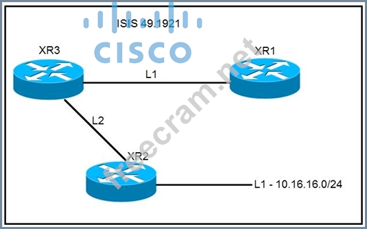 A network operator must inject a Level 1 route from XR2 (10.16.16.0/24) into the ISIS topology. Which configuration allows the injection in a way that XR3 and XR1 have a valid and working route for 10.16.16.0/24?