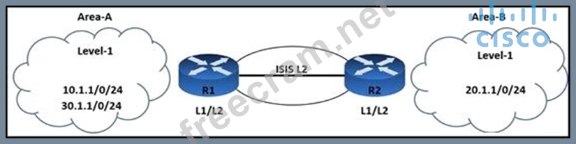 An engineer is troubleshooting IS-IS configuration between two areas. IS-IS Area-A network 30.1.1.0/24 is leaked into IS-IS Area-B. R2 is failing to filter the route updates from network 10.1.1.0/24. Which configuration must the engineer apply to resolve the issue?