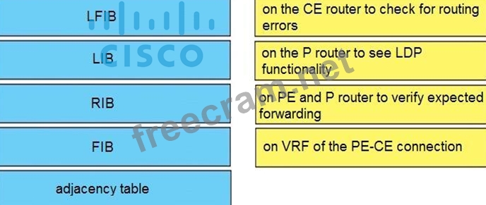 Drag and drop the table types from the left onto the most useful troubleshooting tasks/router types on the right. (Not all options are used.)
