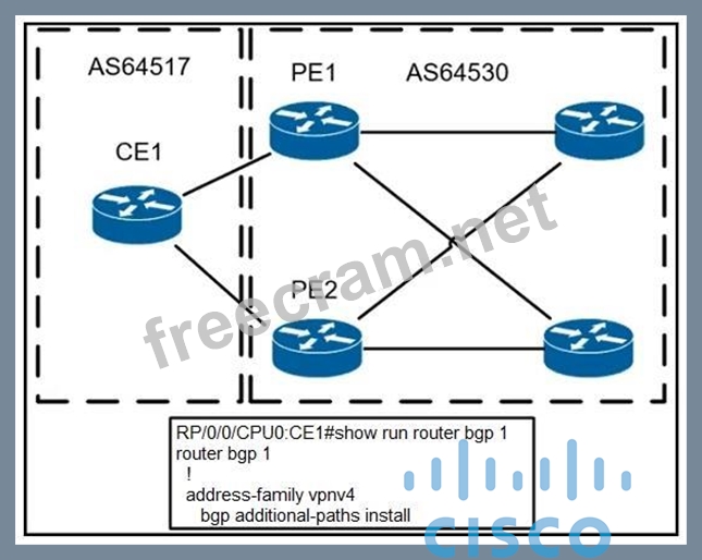 Question 95: Refer to the exhibit. CE1 and CE2 are iBGP neighbors in AS 6...