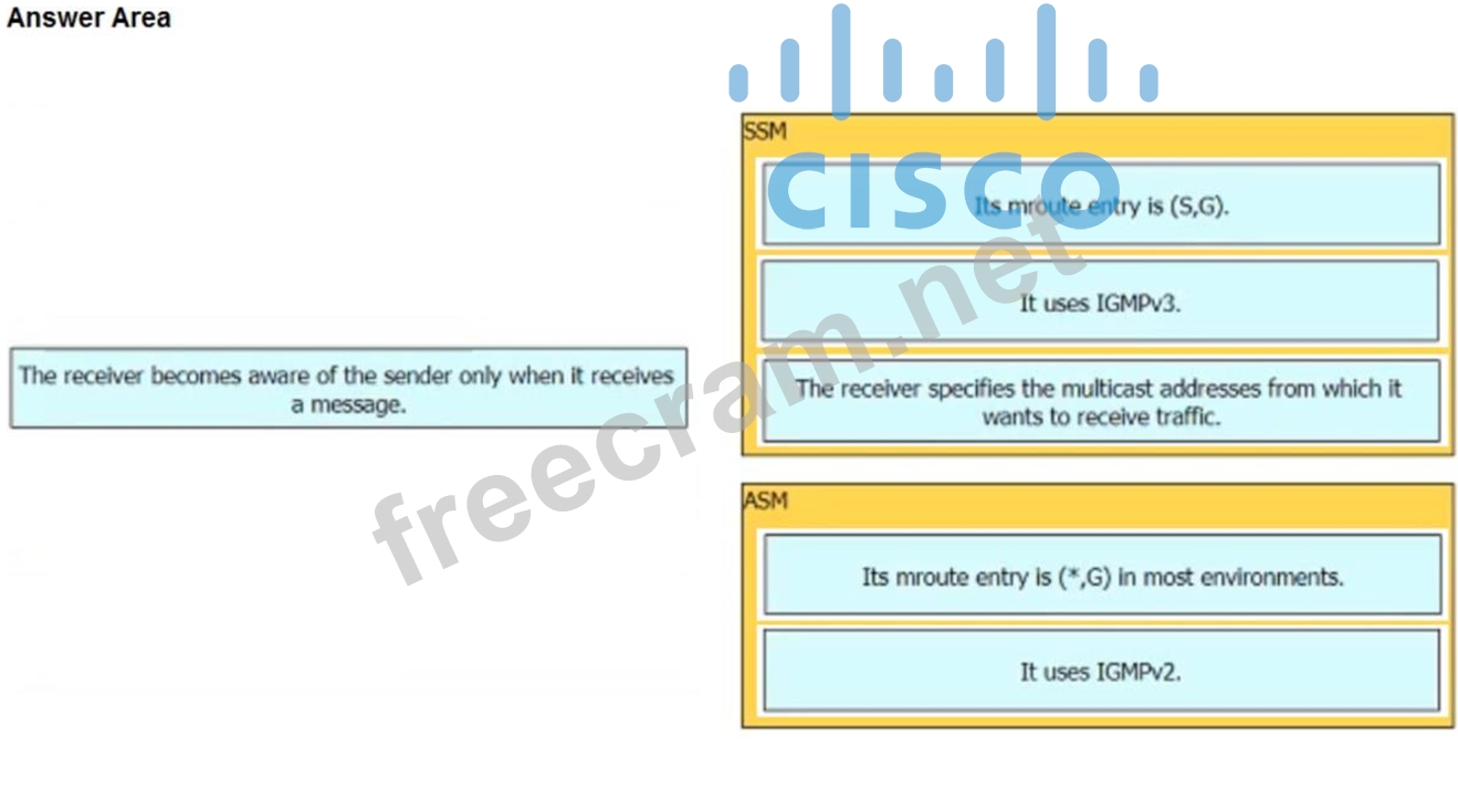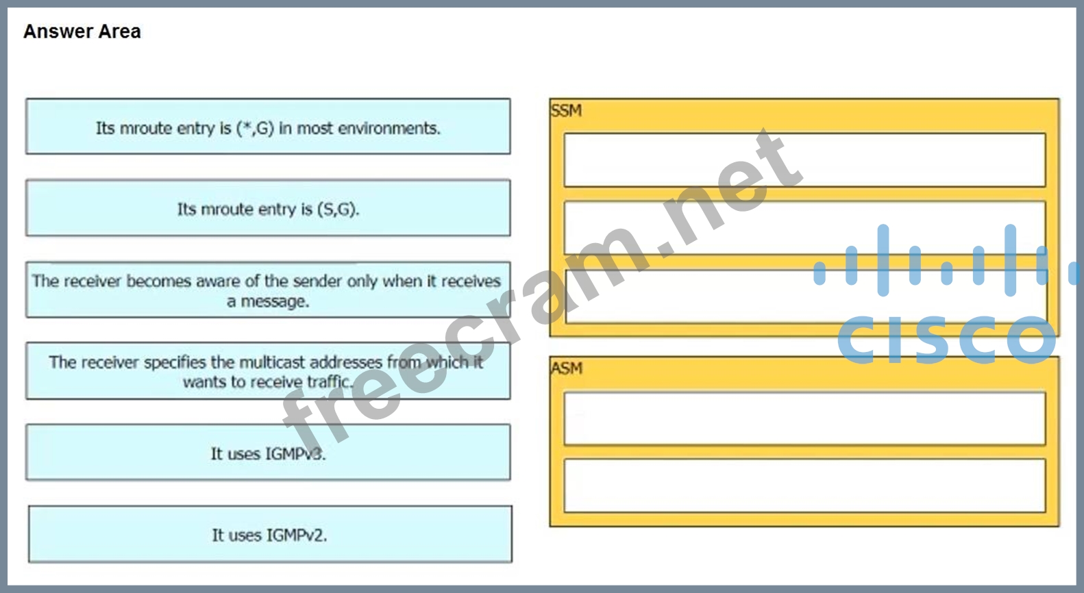 Drag and drop the features about multicast from the left onto the multicast protocols on the right.