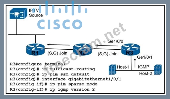 Question 43: Refer to the exhibit. R3 is: - failing to accept multicast R...