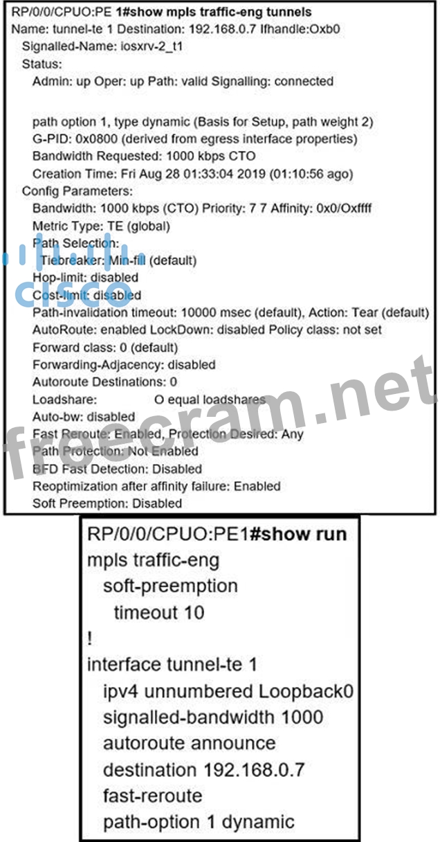 Refer to the exhibit. A network operator is troubleshooting TE tunnels and discovers that the soft preemption is not working as desired.