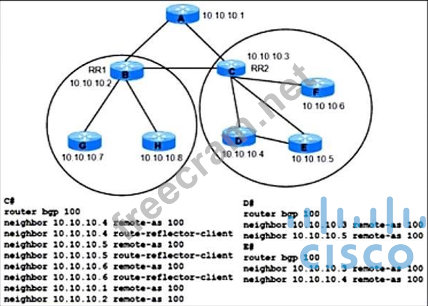- Router F is not an iBGP peer of routers D and E.
