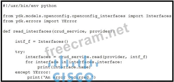 When YDK is used to interact with Cisco routers, what is the purpose of passing intf_f into the crud_service.read() method?