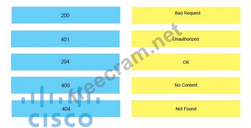 Drag and drop the HTTP status code number on the left to the corresponding status code name on the right.