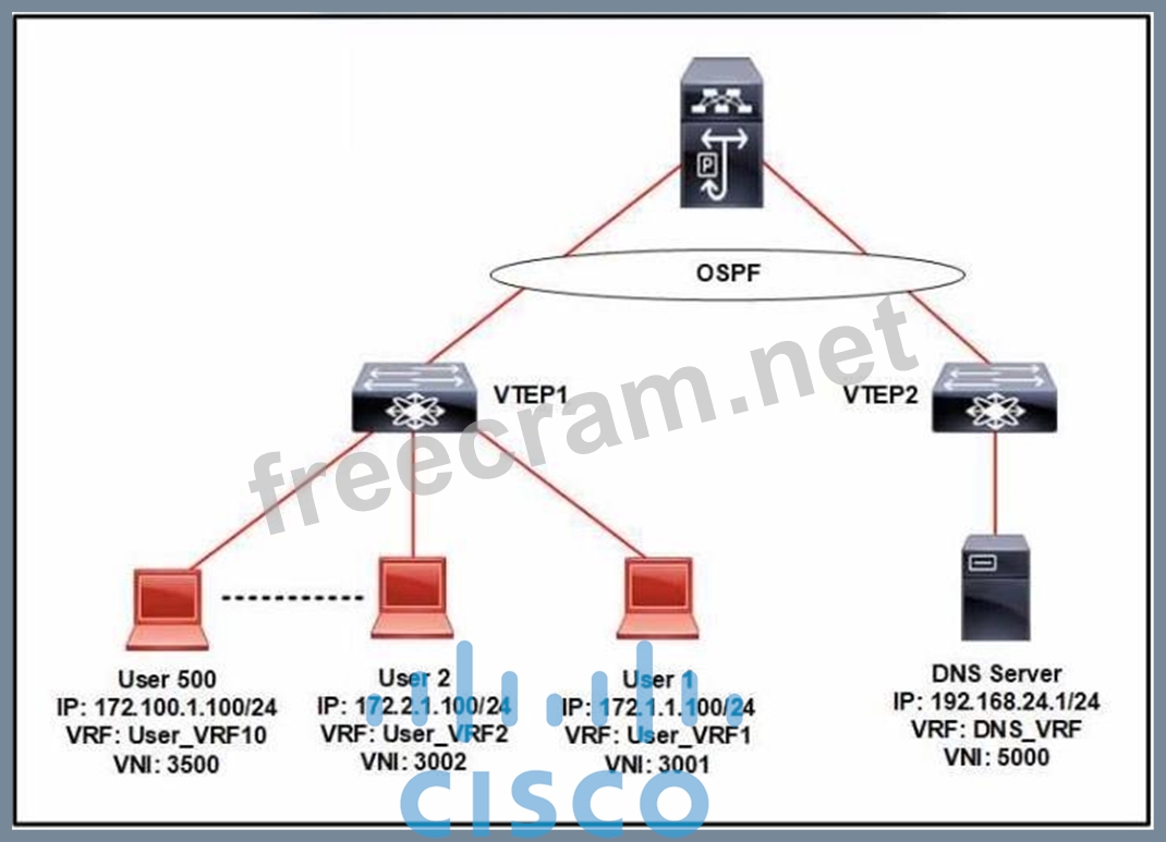 Question 56: Refer to the exhibit. A customer requires a VXLAN fabric dep...