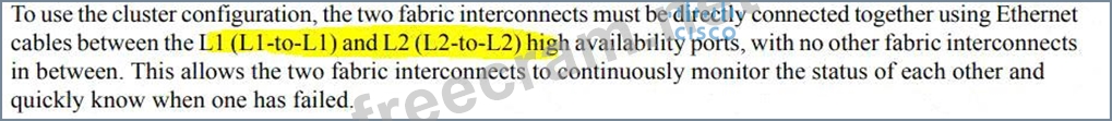 A network architect designs a high-availability architecture for the Cisco UCS Fabric interconnects that installed in a data center. The architecture must support clustering and redundancy. Which architecture meets these requirements?