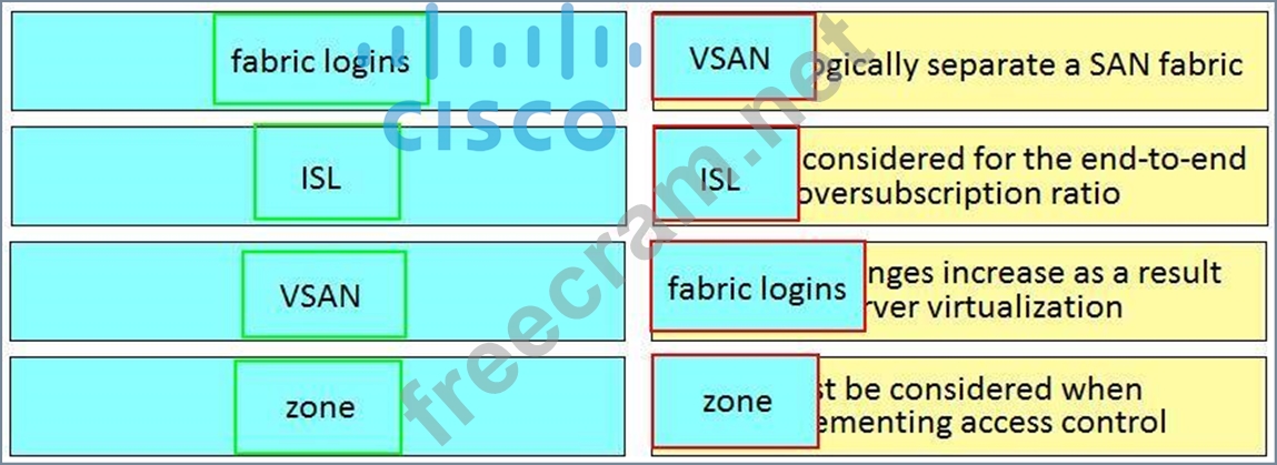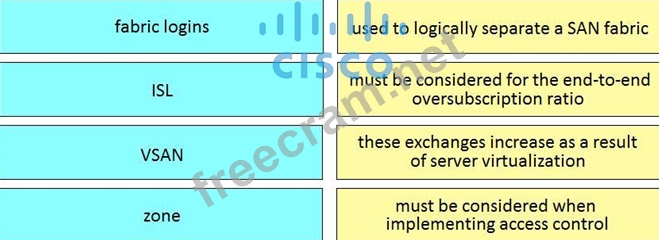 Drag and drop the SAN components from the left onto the correct design considerations on the right.