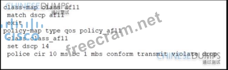 The committed rate must be 10 Mbps with a committed burst rate of 1000 ms Drop any AF11 traffic that violates these settings.