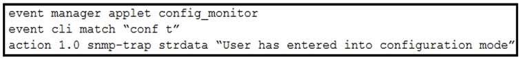Refer to the exhibit. The EEM script fails to send an SNMP trap when a user attempts to enter configuration mode. Which configuration is missing from the script?