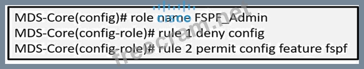 RBAC is configured on the MDS switch for a new SAN administrator engineer to work on the FSPF configuration. However, after the configuration is applied the engineer who was assigned the FSPF_Admin role cannot perform any configuration changes. Which action resolves the issue?