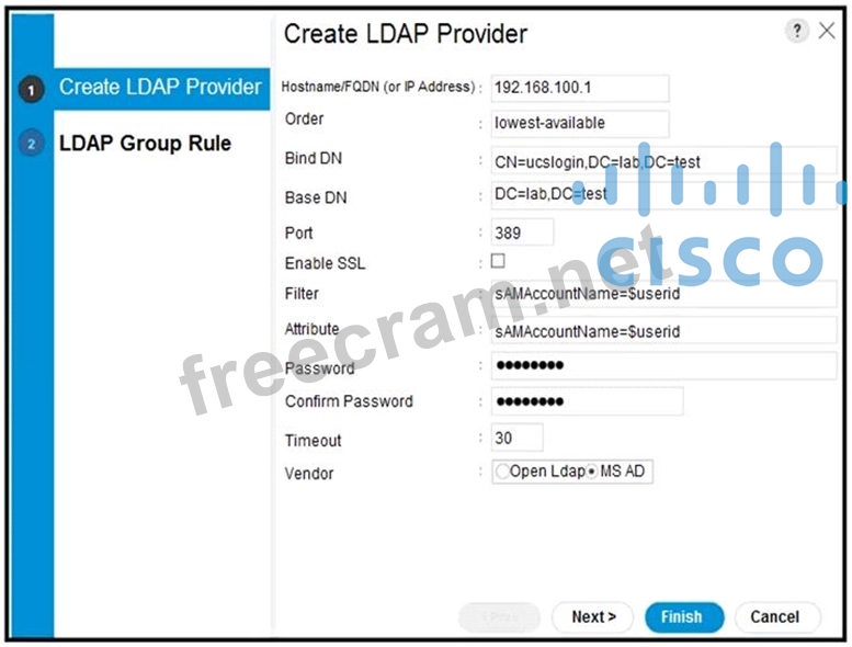 Refer to the exhibit. Refer to the exhibit. A network engineer configures an authentication domain through an LDAP provider on the Cisco UCS Manager for users from different companies to log into their respective organizations created in the UCS Manager. The engineer tests the configuration and notices that any user has login access to any organization in the UCS Manager. Which action should be taken to resolve the issue?