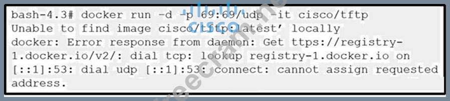 An engineer is experiencing a problem when running a Docker container inside the Cisco Nexus 9000 bash shell. Which action resolves the issue?