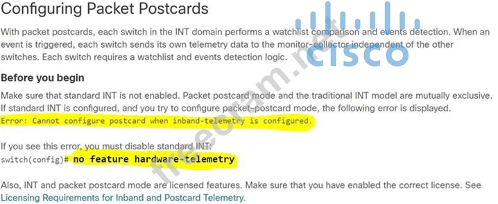 Question 69: An engineer enables the packet postcards feature on a Cisco ...