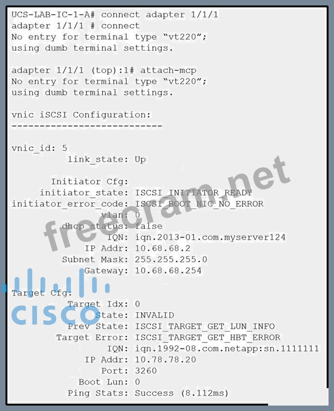 A Cisco UCS B-Series Blade Server is configured to boot from a shared storage via an iSCSI network. When a service profile is associated with the blade, the blade fails to attach the LUN. Which action resolves the issue?
