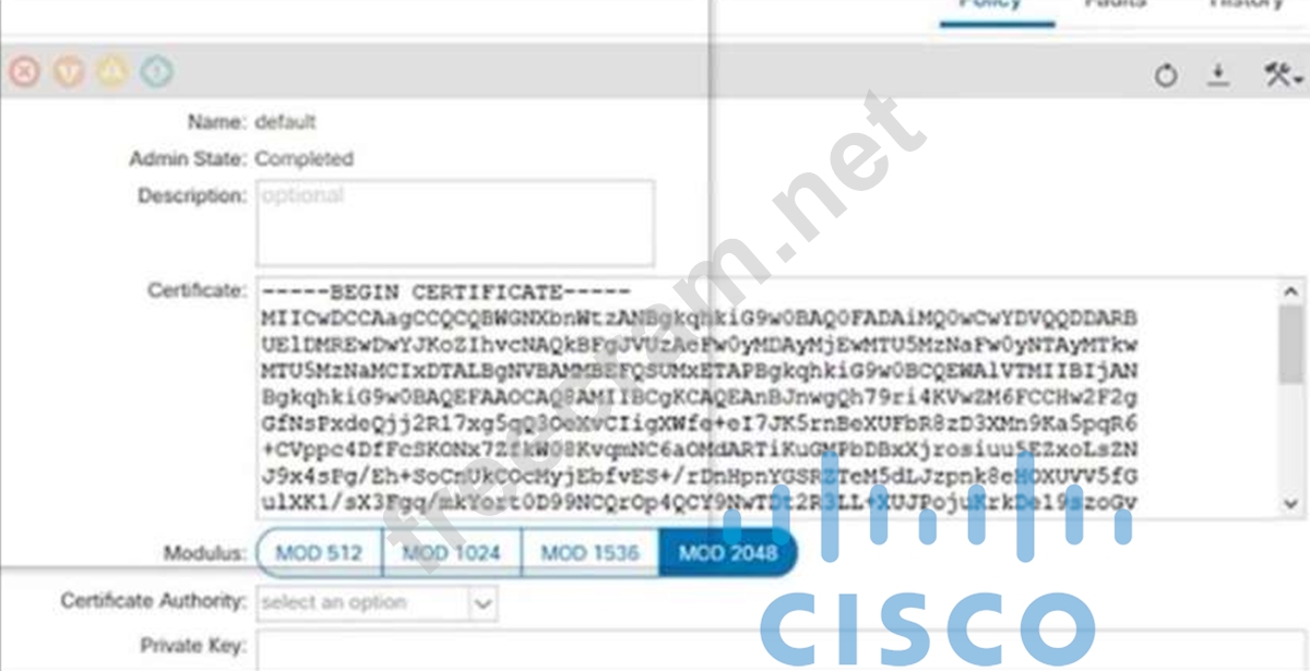 A certificate is implemented on the security configuration on the Cisco ACI controller. A customer receives a