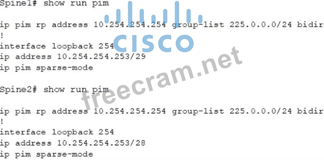 - Spine2 is the active RP for multicast group 225.0.0.0/24.