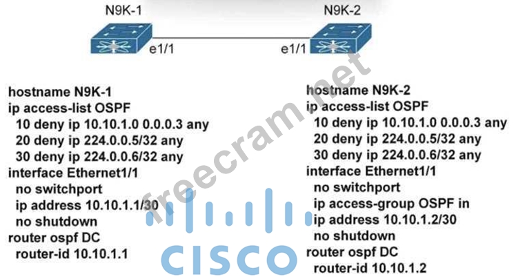 Question 104: Refer to the exhibit. The OSPF neighbor is stuck in the INIT...