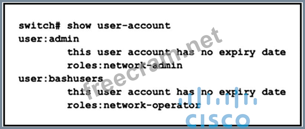 Refer to the exhibit A network administrator must provide Bash shell access to the support team for all of the Cisco Nexus 9000 Series Switches. The newly created user that is named