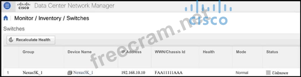Refer to the exhibit. A network engineer must add a Cisco Nexus 5000 Series Switch to a Cisco DCNM. However, the device discovery status shows as unreachable. The engineer verifies these parameters: