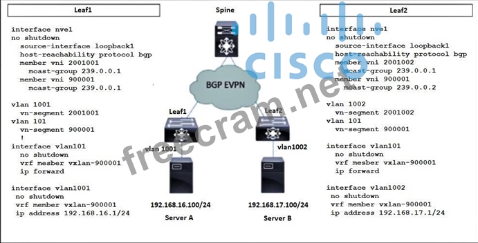 Question 82: Refer to the exhibit. The VXLAN communication fails between ...