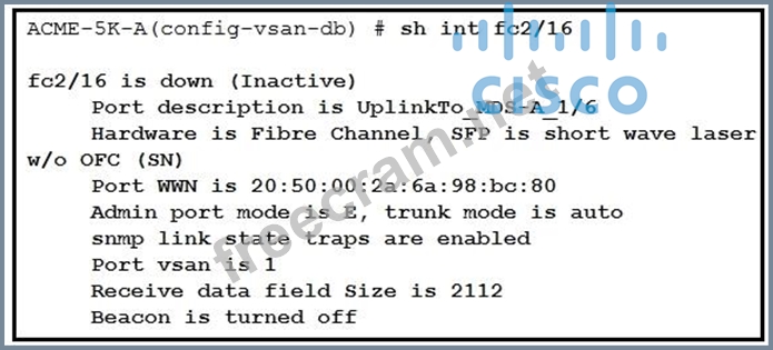 Refer to the exhibit. The connection between a Cisco Nexus 5548UP switch and a Cisco MDS switch fails to initialize. What is the cause of the issue?
